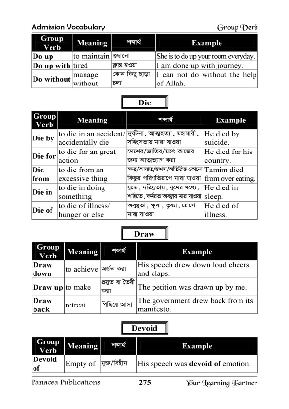 ♦ অর্থ এবং Practical Example সহ Admission Test উপযোগী গুরুত্বপূর্ণ Appropriate preposition এবং Group Verb.