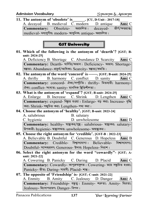 ♦ বাংলা অর্থসহ উল্লেখযোগ্য (Notable) Synonym এবং Antonym.