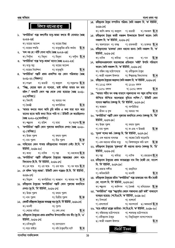 🠞 অধ্যায় ভিত্তিক একাধিক Self Test সম্বলিত এবং প্রতি পৃষ্ঠার শেষে উত্তর প্রদান।