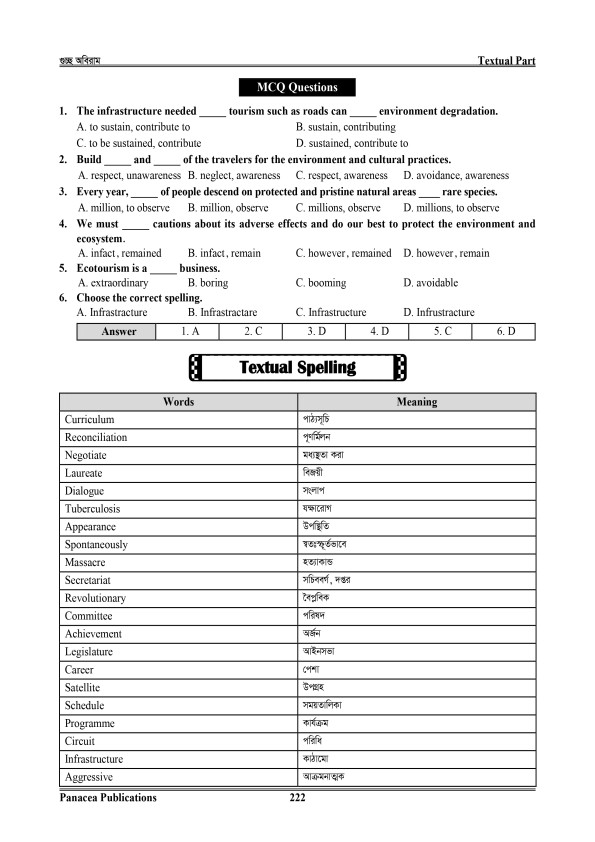 🠞 অধ্যায় ভিত্তিক একাধিক Self Test সম্বলিত এবং প্রতি পৃষ্ঠার শেষে উত্তর প্রদান।